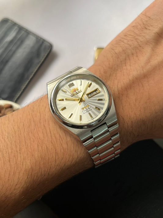 Orient Tri-Star Crystal Silver Sunray Dial - Automatic Vintage Watch (Pre Owned) - A273