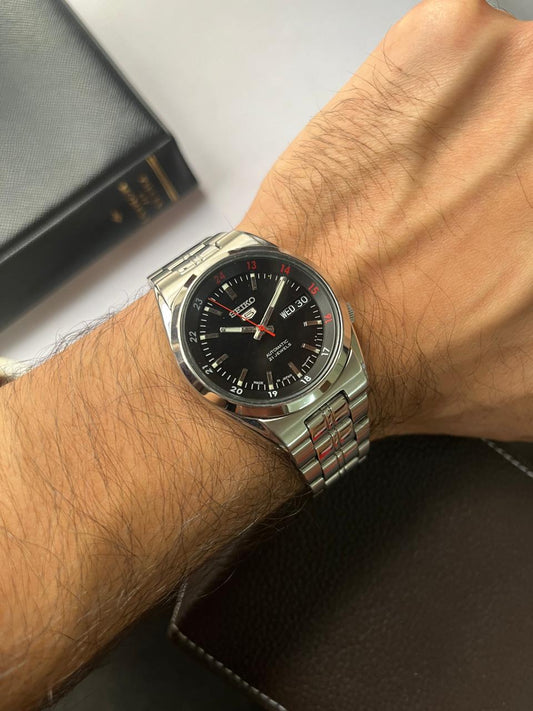 Seiko 5 - Railway Time Black Dial with Glass Back (Pre Owned)