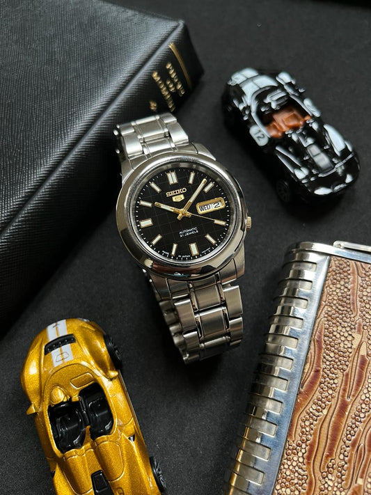 Seiko 5 Black Chequered Dial with Glass Back - Automatic Watch (Pre Owned) - A87
