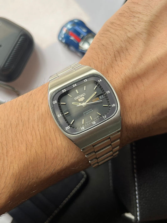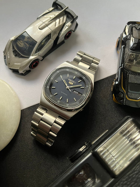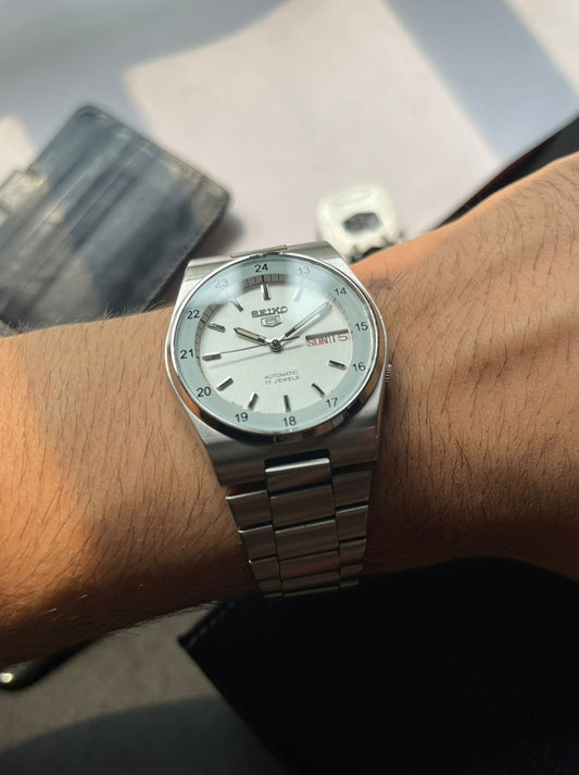 Seiko 5 Railway time Blue Dial with Glass Back - Automatic Vintage Watch (Pre Owned)