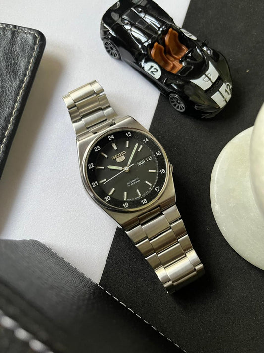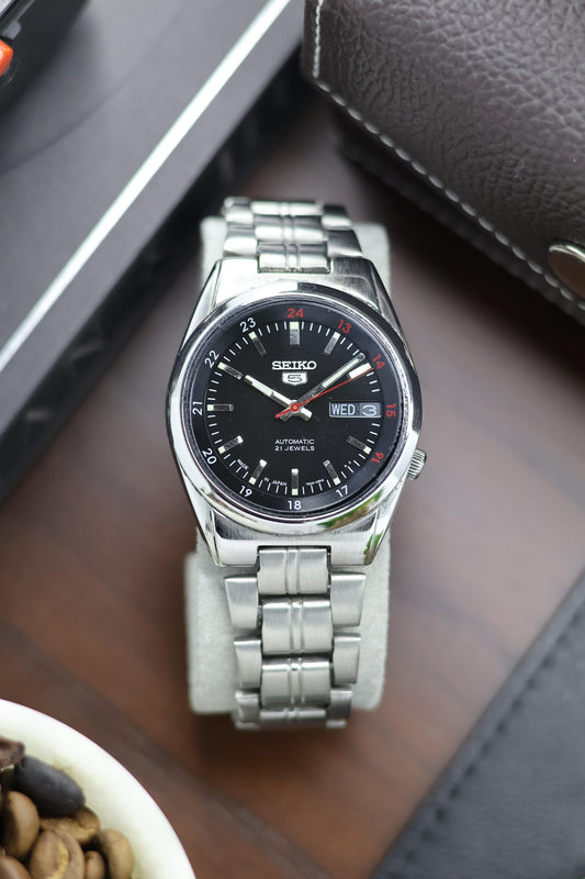 Seiko 5 Railway Time Black Dial - Automatic Vintage Watch (Pre Owned)