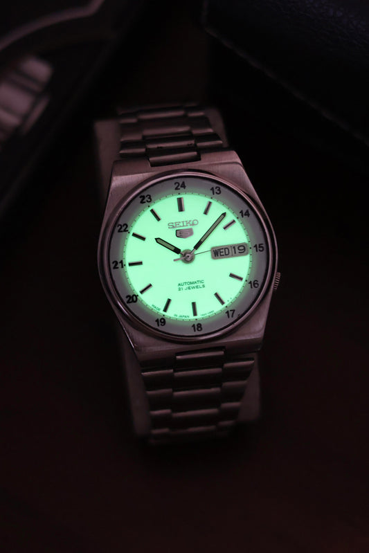 Seiko 5 Railway Time Lume Dial with Glass Back - Automatic Vintage Watch (Pre Owned) - A358