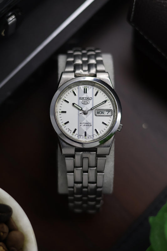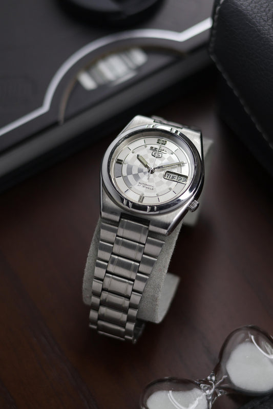 Seiko 5 Silver Dartboard Dial with Glass Back - Automatic Vintage Watch (Pre Owned) - A264