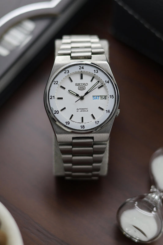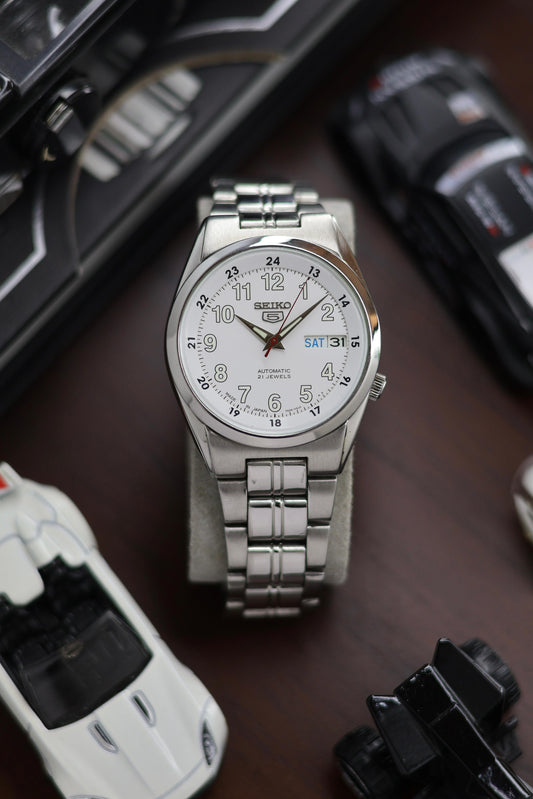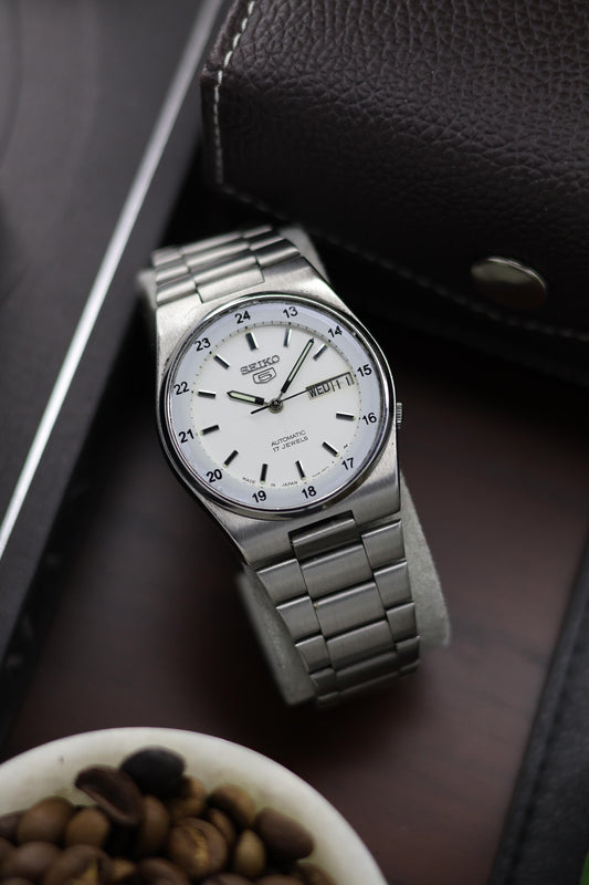 Seiko 5 Railway Time White Dial with Glass Back - Automatic Vintage Watch (Pre Owned) - A365