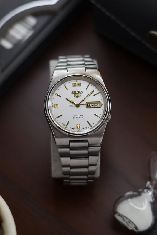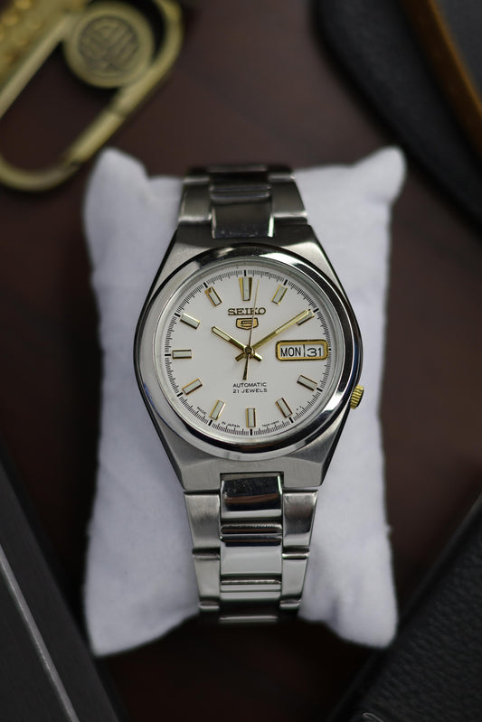 Seiko 5 White Dial with Glass Back - Automatic Vintage Watch (Pre Owned) - A247