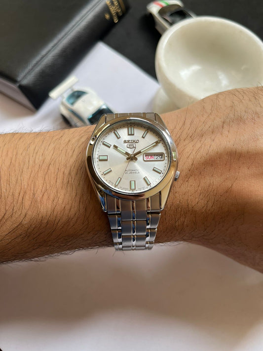 Seiko 5 White Dial with Glass Back (Pre Owned)