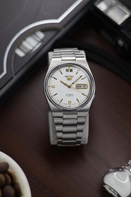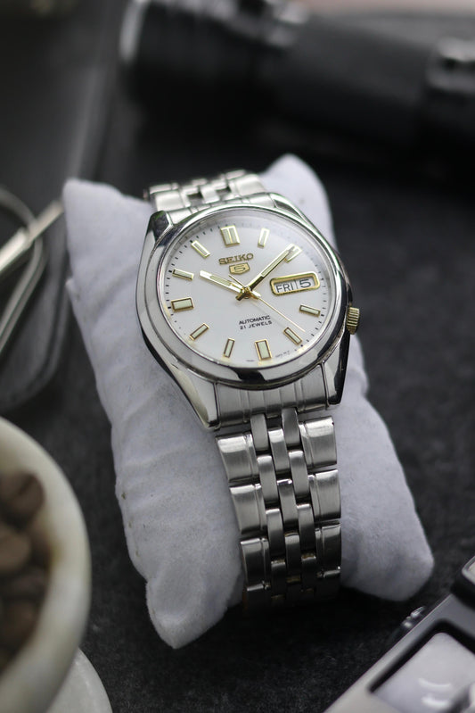 Seiko 5 White Dial with Glass Back - Automatic Vintage Watch (Pre Owned) - A256