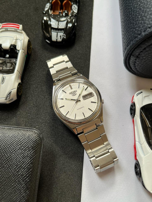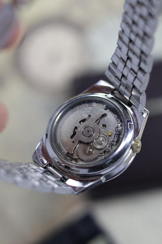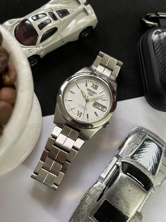 Seiko 5 White Dial with Glass Back - Automatic Vintage Watch (Pre Owned)