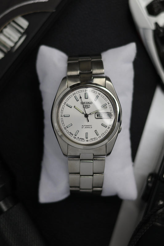Seiko 5 White Dial with Glass Back (Pre Owned) - #W102