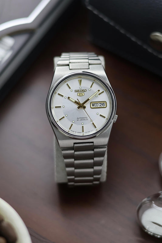 Seiko 5 White Motif Dial with Glass Back - Automatic Vintage Watch (Pre Owned) - A360