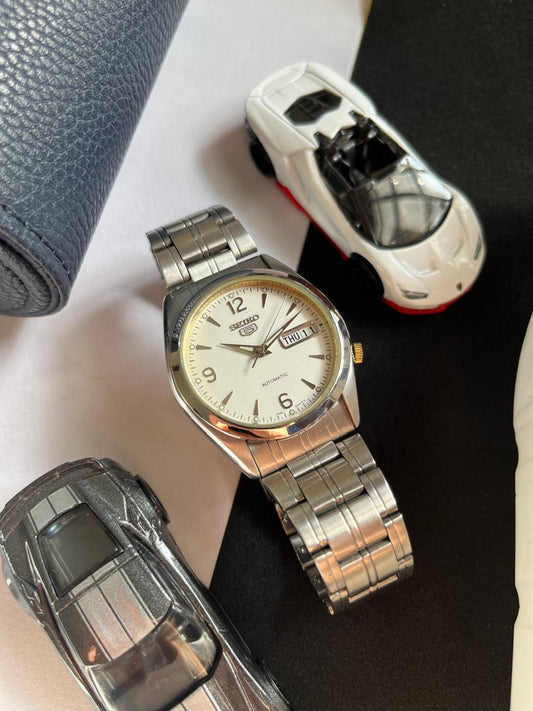 Seiko 5 White Motif Dial with Glass Back - Automatic Vintage Watch (Pre Owned) - A413