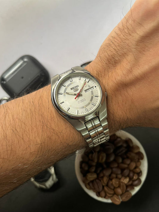 Seiko 5 White Textured Dial with Glass Back(Pre Owned) - #W04
