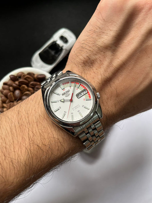 Seiko 5 White Racing Dial with Glass Back(Pre Owned)