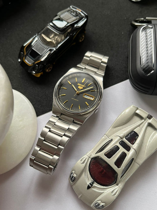 Seiko 5 Yellow Lined Dial with Glass Back - Automatic Vintage Watch (Pre Owned) - A301
