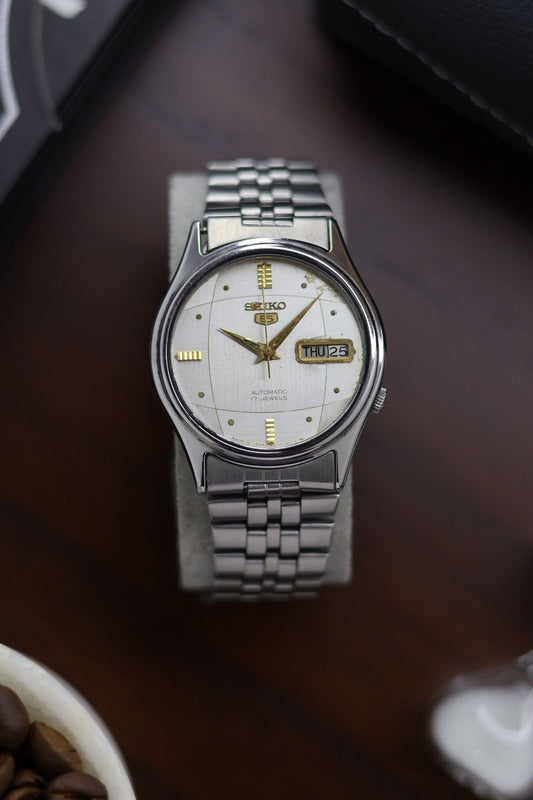 (Super Rare) 1980 Seiko 5 Silver Motif Dial - Automatic Vintage Watch (Pre Owned) - A317