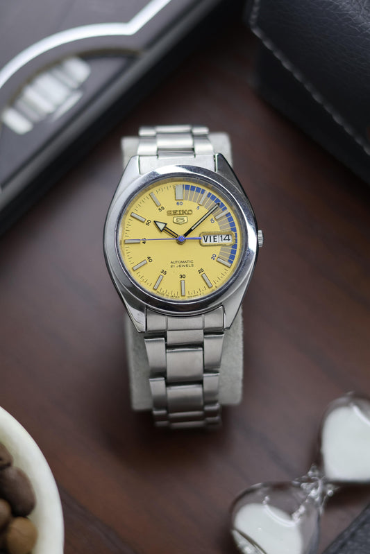Seiko 5 Yellow Motif Dial with Glass Back - Automatic Vintage Watch (Pre Owned) - A171