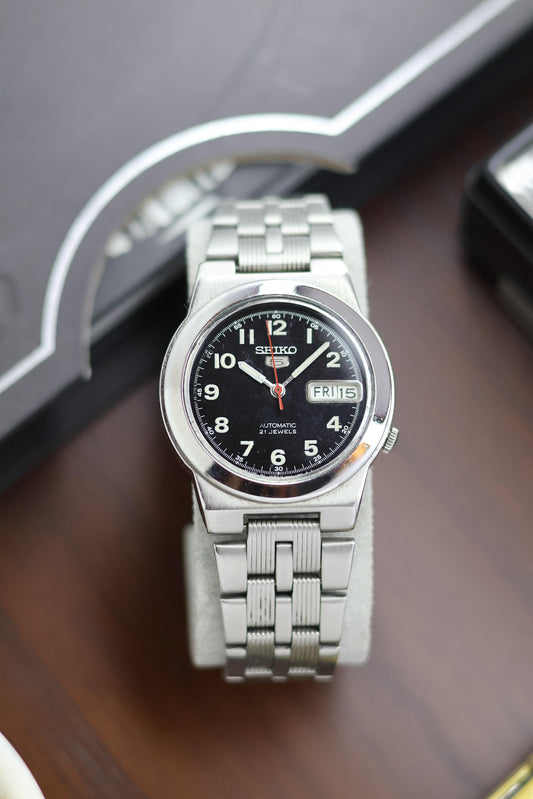 Seiko 5 Black Field Dial With Glass Back - Automatic Vintage Watch (Pre Owned) - A177
