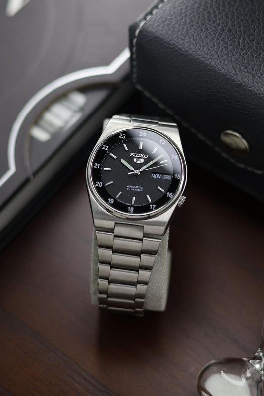 Seiko 5 Black Railway Time Dial with Glass Back - Automatic Vintage Watch (Pre Owned) - A251