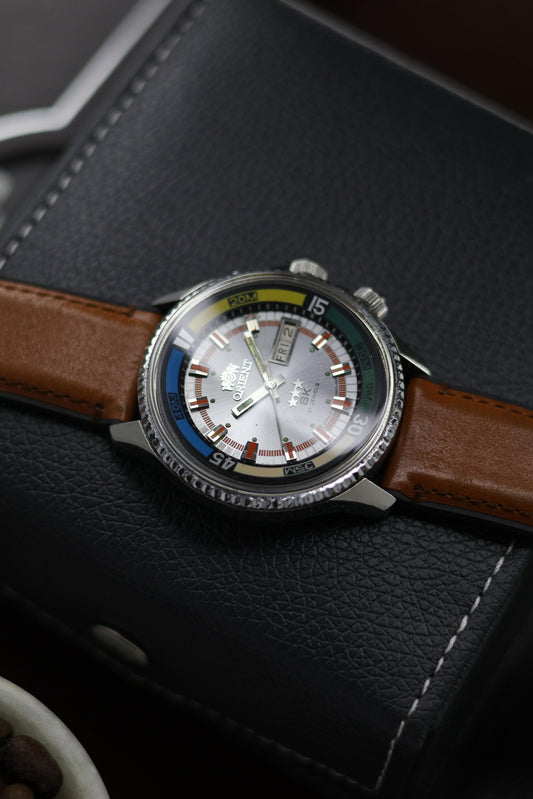 (Super Rare) Orient Tri-Star SK Diver Silver Dial with Rotating Inner Ring - Automatic Vintage Watch (Pre Owned) - A416