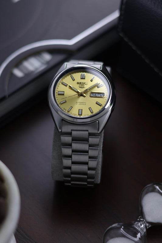 (Super Rare) Seiko 5 SNXS81 Gold Dial with Glass Back - Automatic Vintage Watch (Pre Owned) - A354