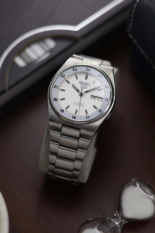 Seiko 5 White Motif Dial with Glass Back - Automatic Vintage Watch (Pre Owned) - A360