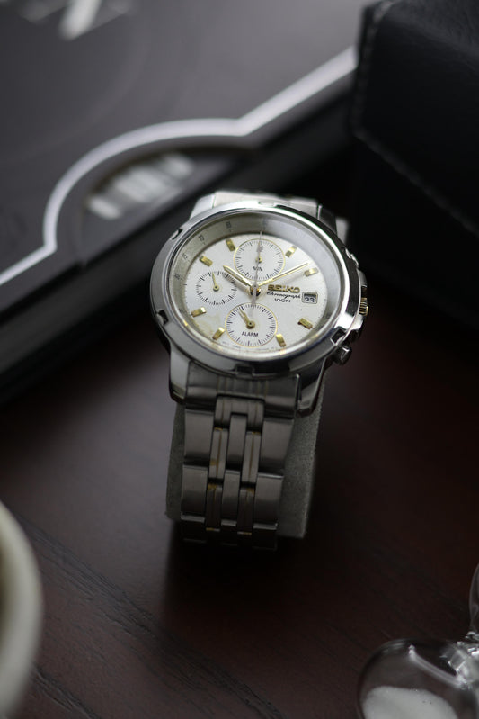 (Super Rare) Seiko Chronograph 100M Silver Dial with Alarm (Pre Owned) - A398