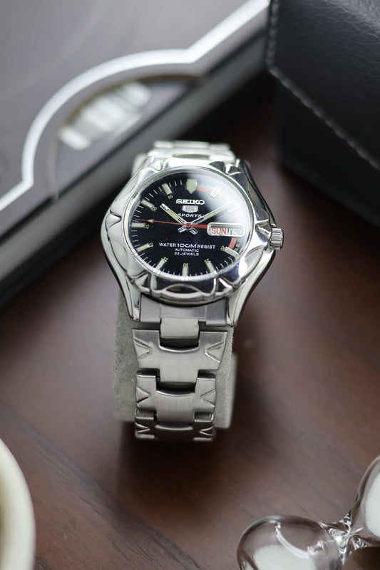 (Super Rare) Seiko 5 Sports Diver 100M Black Dial with Glass Back - Automatic Vintage Watch (Pre Owned) - A345