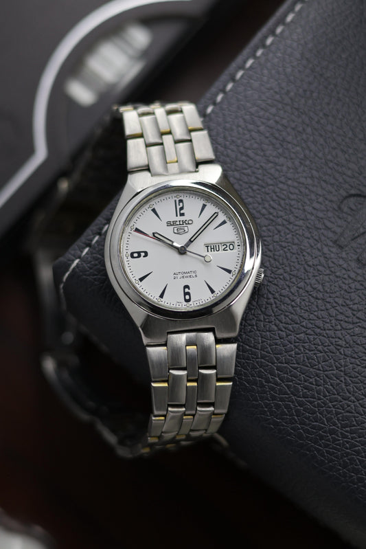 (Super Rare) Seiko 5 White Dial with Glass Back - Automatic Vintage Watch (Pre Owned) - A304