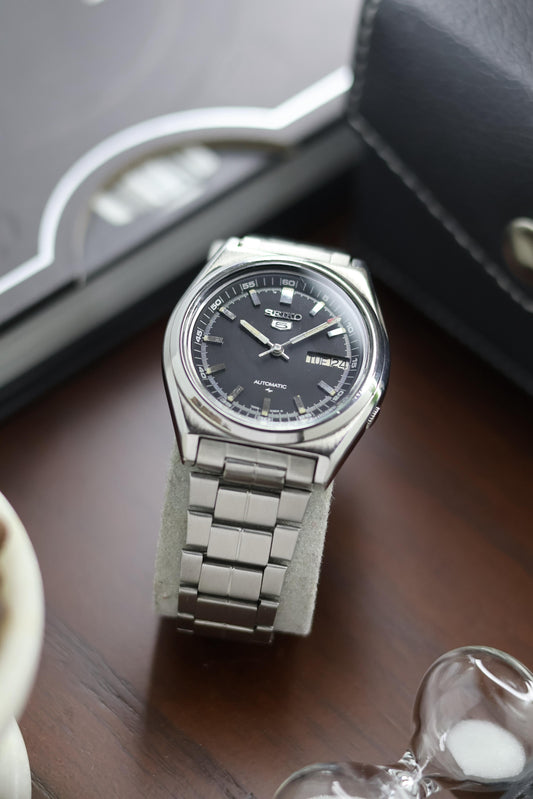 Seiko 5 Black Opaline Dial with Glass Back - Automatic Vintage Watch (Pre Owned) - A162