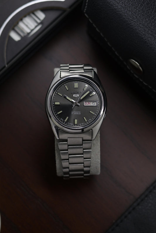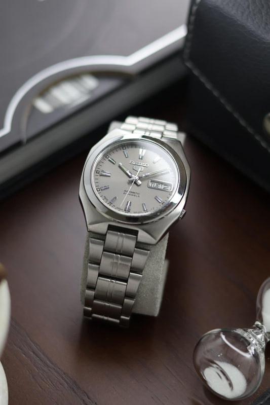 (Super Rare) Seiko 5 Grey Dial with Glass Back - Automatic Vintage Watch (Pre Owned) - A264