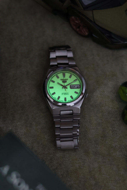 (Super Rare) Seiko 5 Lume Dial with Glass Back - Automatic Watch (Pre Owned)