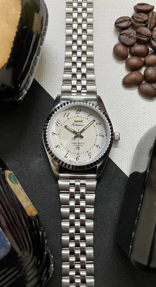 Fluted HMT Kohinoor - WHITE ‘Drunken Numbers’ Dial