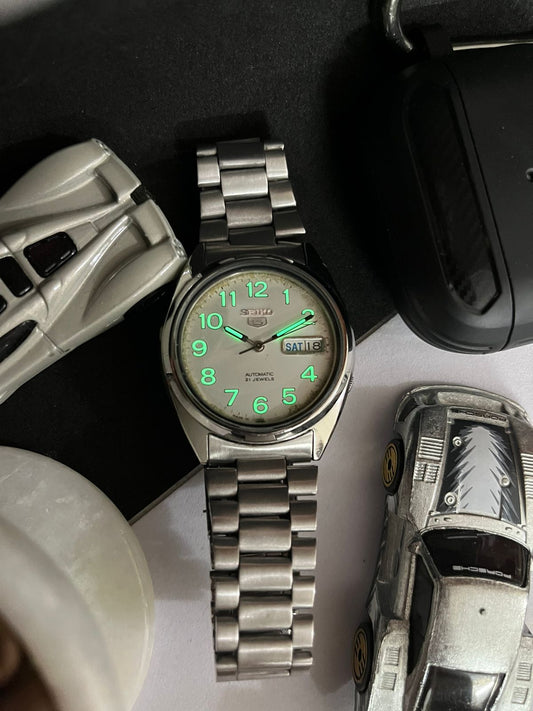 Seiko 5 Light Grey Dial with Glass Back (Pre Owned)