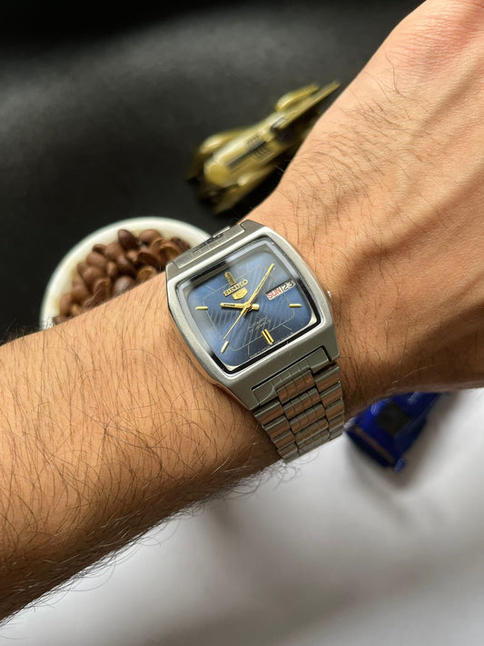 (Super Rare) 1984 Seiko 5 Railway Time Navy Blue Square Dial (Pre Owned)