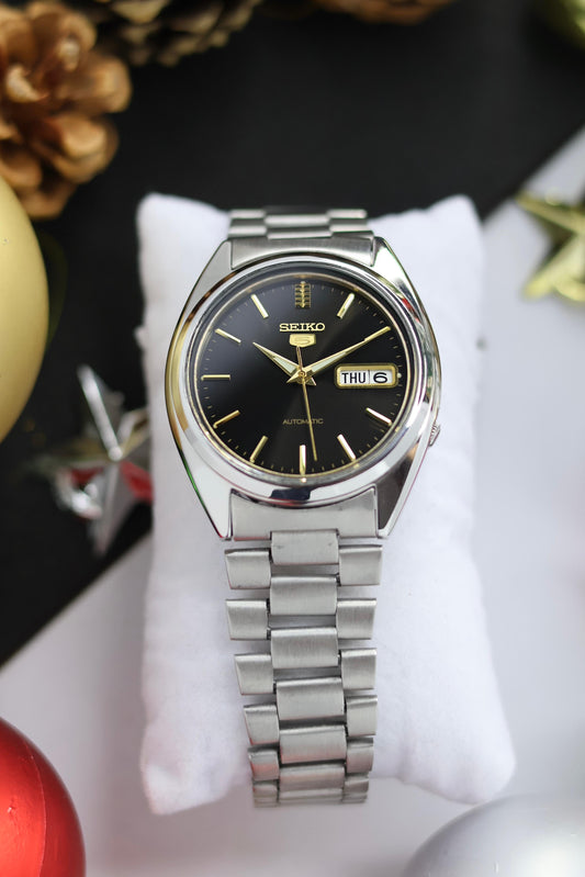 Seiko 5 Black Dial with Glass Back (Pre Owned)