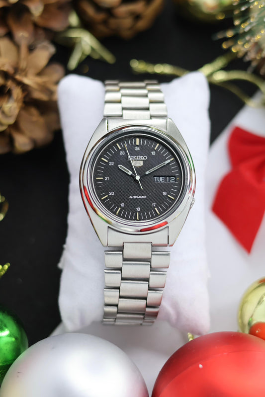 (Super Rare) Seiko 5 Black Textured Dial with Glass Back (Pre Owned)