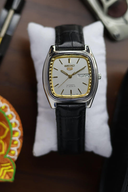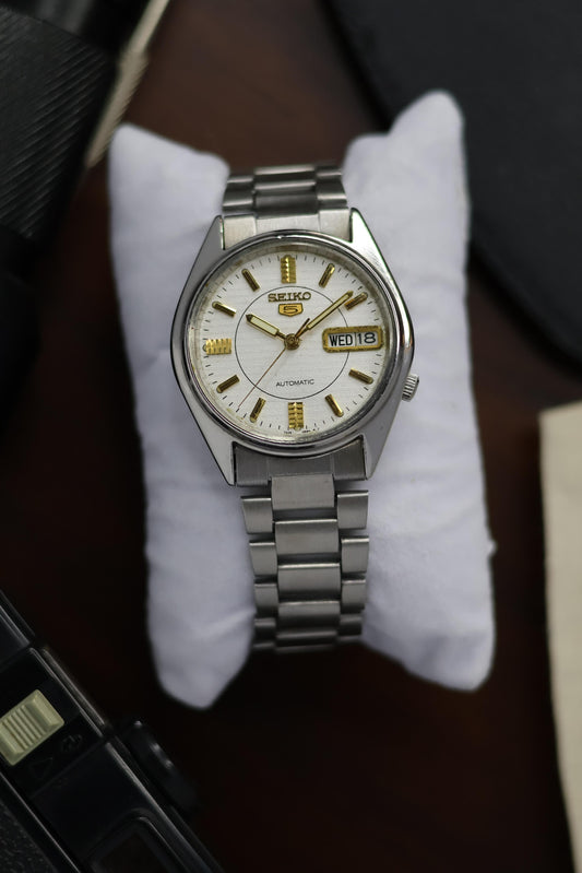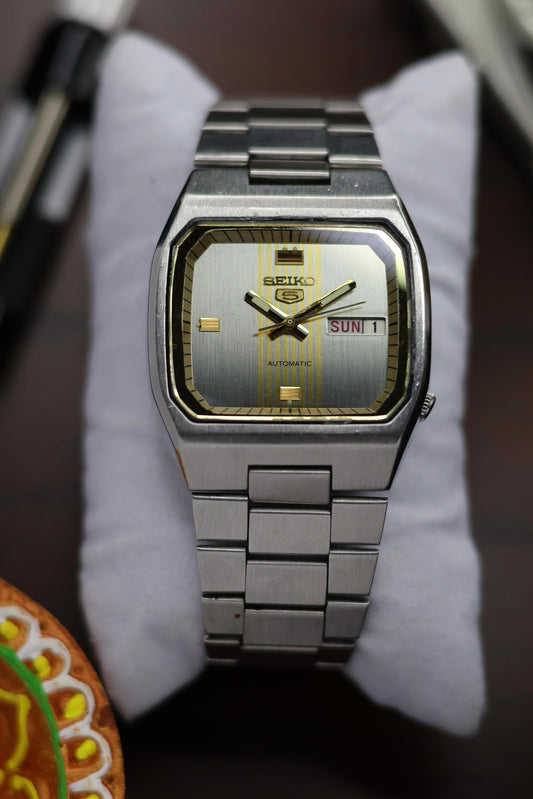 (Super Rare) 1982 Seiko 5 Silver TV Dial with Gold Accents (Pre Owned)