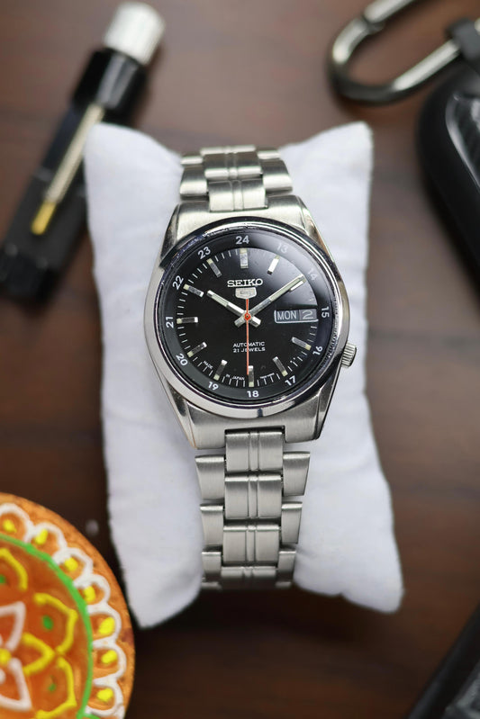 Seiko 5 Black Dial with Glass Back (Pre Owned)