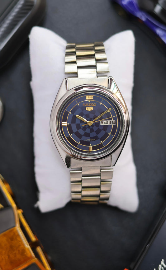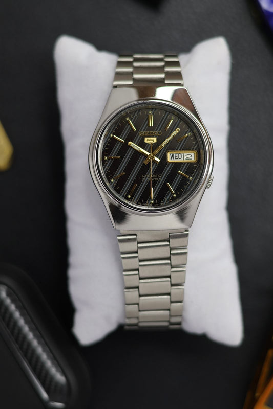 1981 Seiko 5 Black & Blue Striped Dial (Pre Owned)