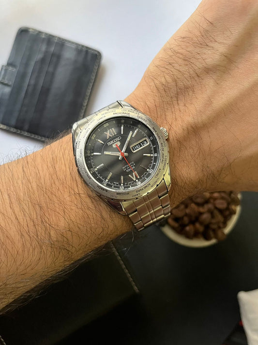 (Super Rare) Seiko 5 WORLD TIME 23 Jewels Black Dial with Glass Back (Pre Owned) #W01 - With FREE Leather Box