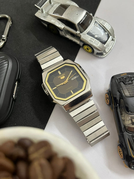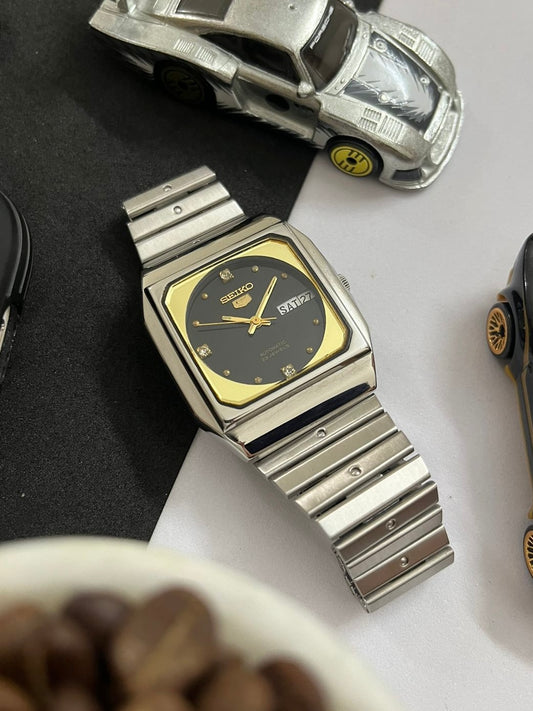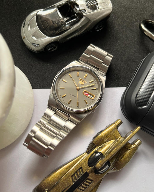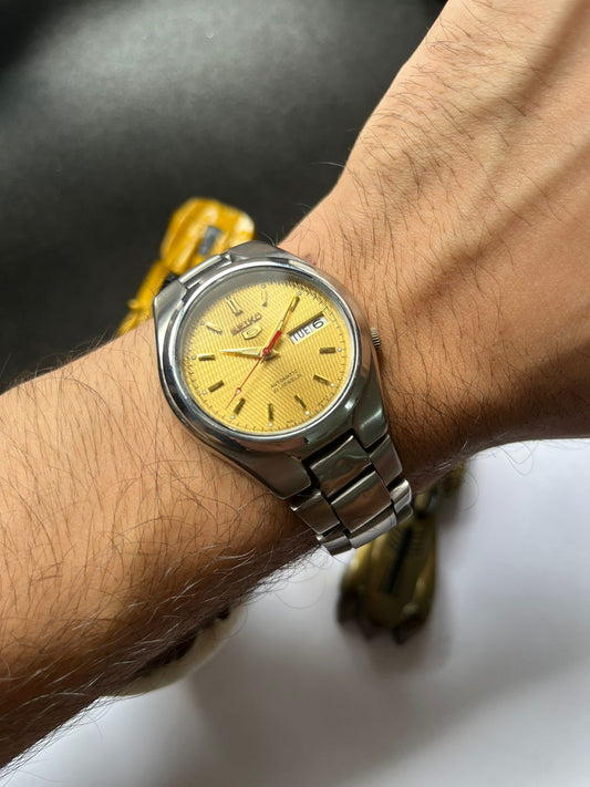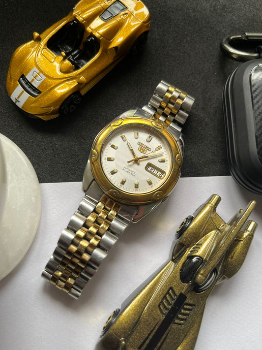 (Super Rare) Seiko 5 Two-Tone Champagne Dial with Fluted Bezel & Glass Back (Pre Owned)