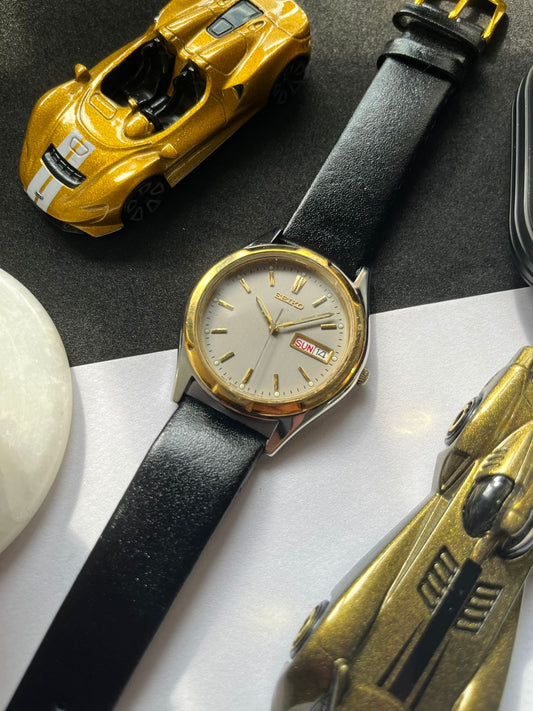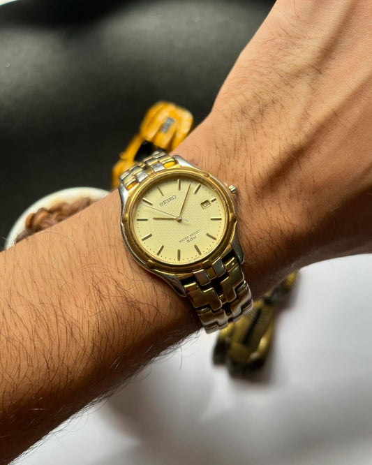 (Super Rare) Seiko Quartz Two-Tone Cream Guilloche Dial (Pre Owned) - #W48