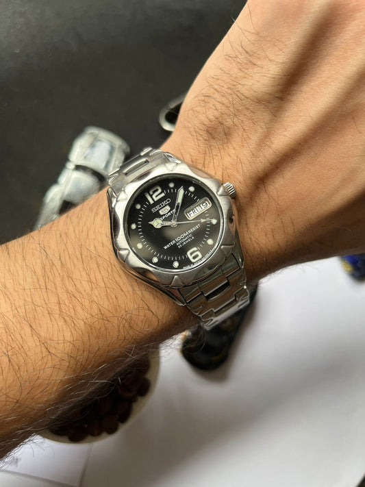 Seiko 5 Sports Diver 100M Black Dial with Glass Back & Mercedes Hands (Pre Owned) - #W78