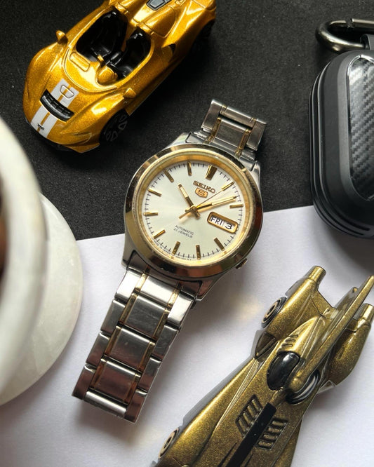 (Super Rare) 1998 Seiko 5 Two-Tone White Dial (Pre Owned) -#W51