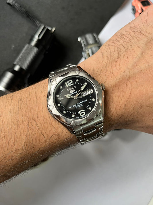 Seiko 5 Sports Black Diver with Mercedes Hands and Glass Back (Pre Owned) - #W13