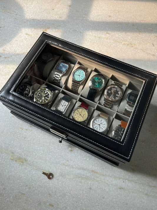 PREMIUM 12 Slot Watch Zipper Organiser Storage Box by Watchtopia