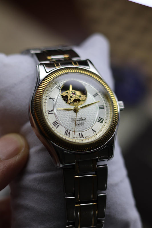 (Super Rare) Woodford Two Tone OPEN HEART 25 Jewels Automatic White Guilloche Dial (Pre Owned)