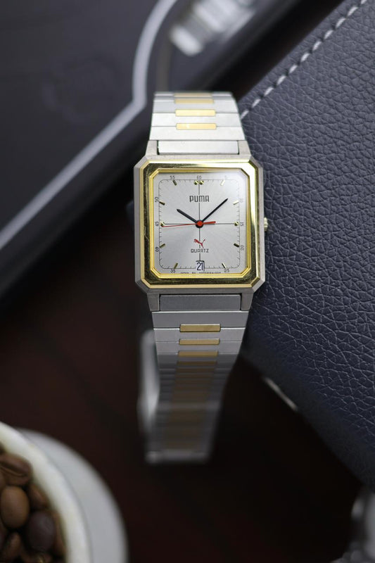 (JDM - Extremely Rare) Limited Edition ORIENT X PUMA Slim Tank Style Two Tone Silver Sunray Dial - Quartz Vintage Watch (Pre Owned) - A366