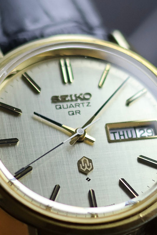 (JDM - Extremely Rare) 1983 Seiko QR Linen Dial with Gold Plated Case - Quartz Vintage Watch (Pre Owned) - A230