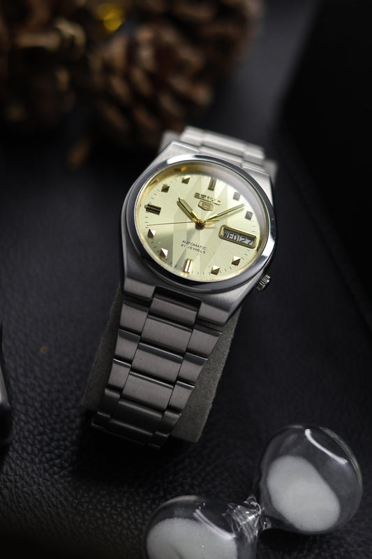 (Super Rare) Seiko 5 Champagne Motif Dial with Glass Back - Automatic Vintage Watch (Pre Owned) - SE551